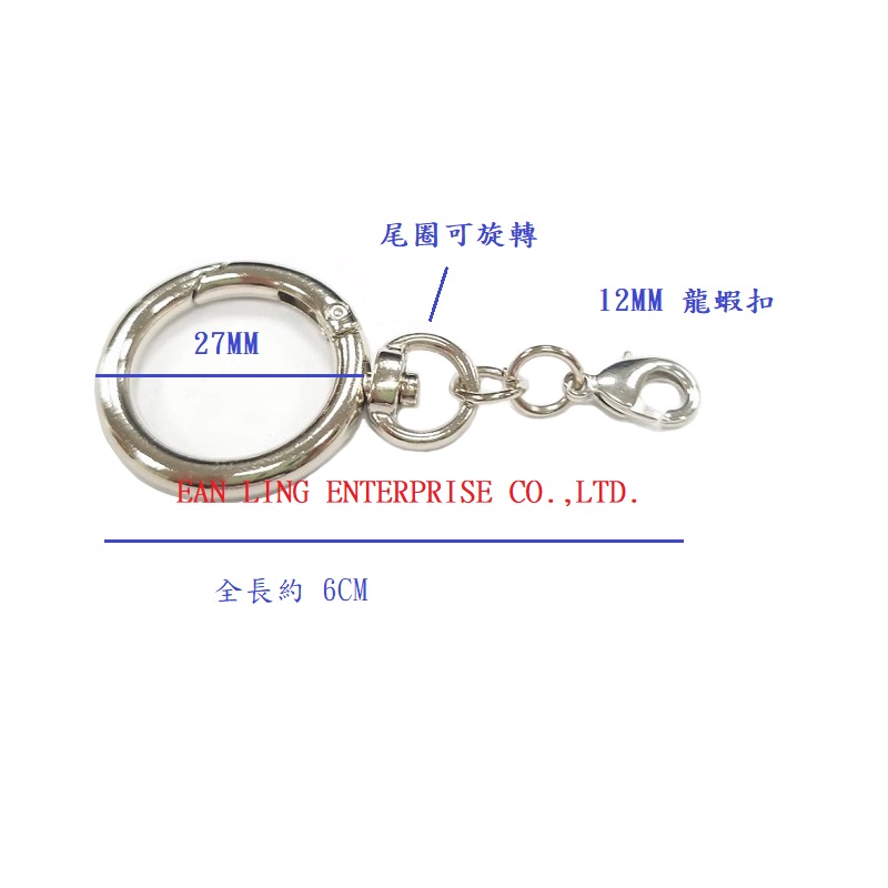 鋅合金彈簧圈 五金彈簧扣 手機掛帶配件 包包環扣 鉤扣 掛扣配件 彈簧扣帶旋轉尾圈